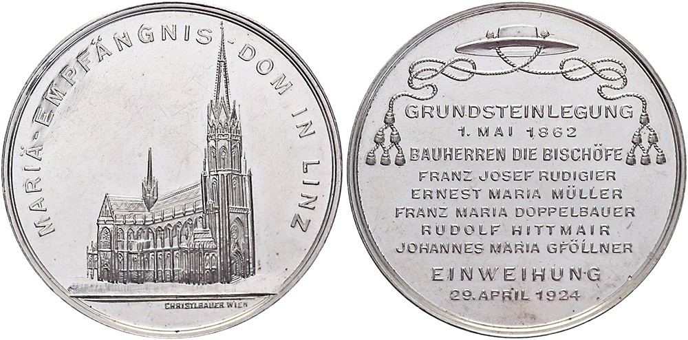 1924 Einweihung Mariä Empfängnis Dom in Linz. Linzer Dom. / Namen der Bischöfe sowie Datum der Einweihung. AR 39,4. Christlbauer, Wien. Fast FDC.