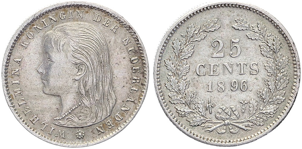 25 Cents 1896 mmt. hellebaard Sch. 851 Ruim zeer fraai
