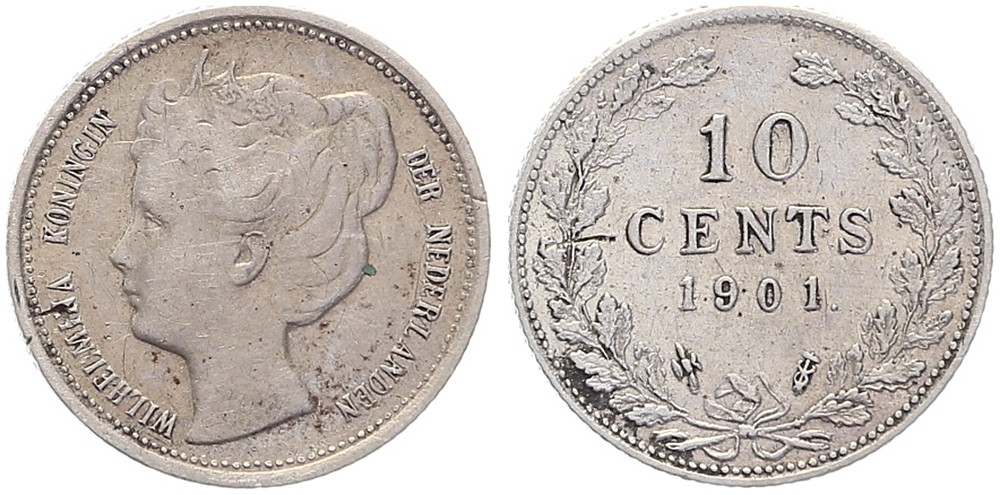10 Cents 1901 mmt. hellebaard Sch. 884 Zeer fraai