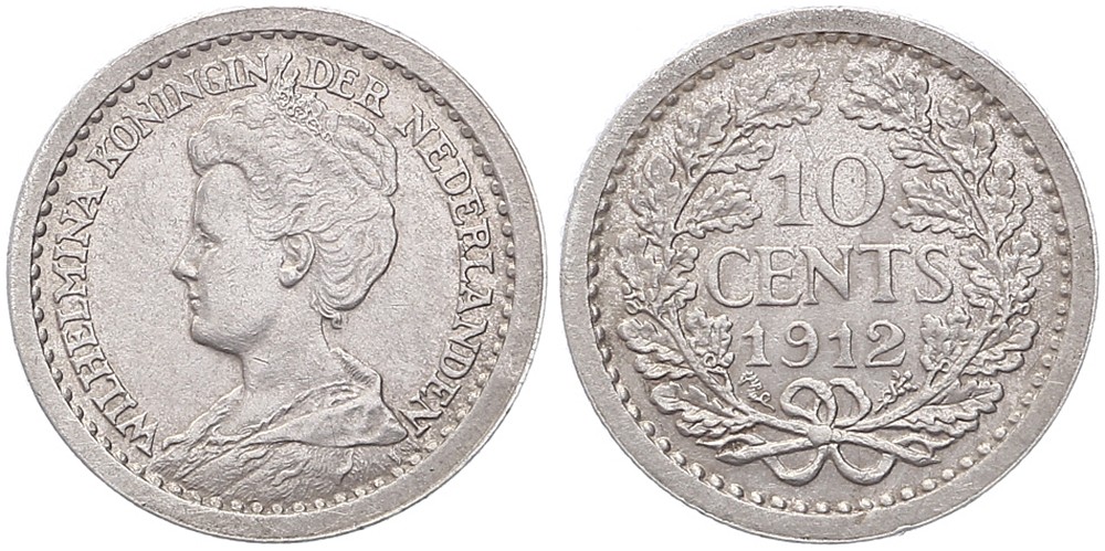 10 Cents 1912 mmt. zeepaardje Sch. 891 variant met hoge kroon, groter borstbeeld Zfr / prachtig