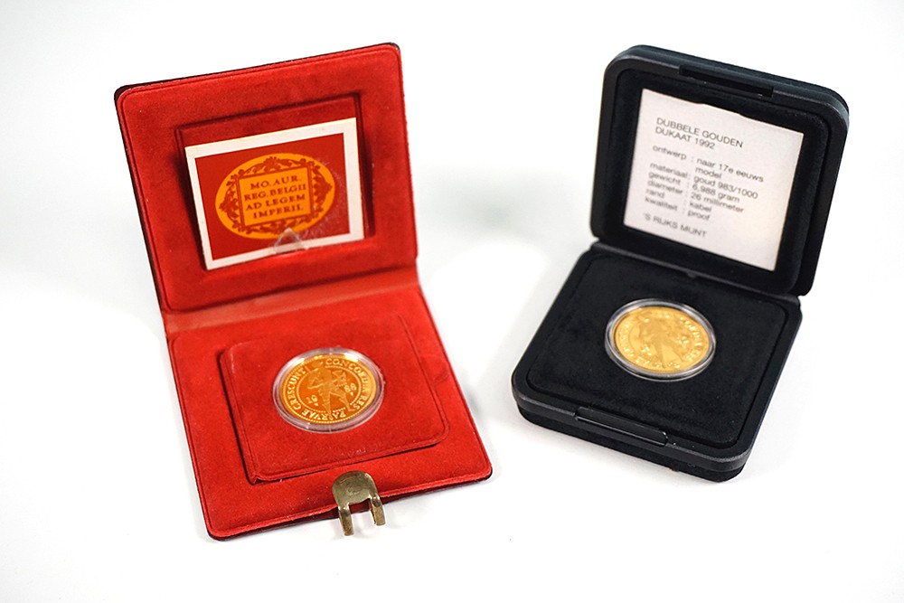 Lot (2) Dubbele gouden dukaat 1988 en 1992. Proof in cassette.