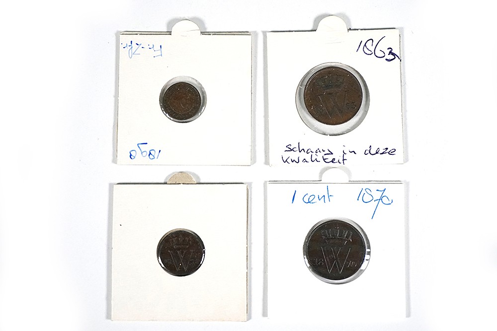 Lot (4) ½ cent 1823 Brussel, ½ cent 1898, 1 cent 1863 en 1870 beide WIII.