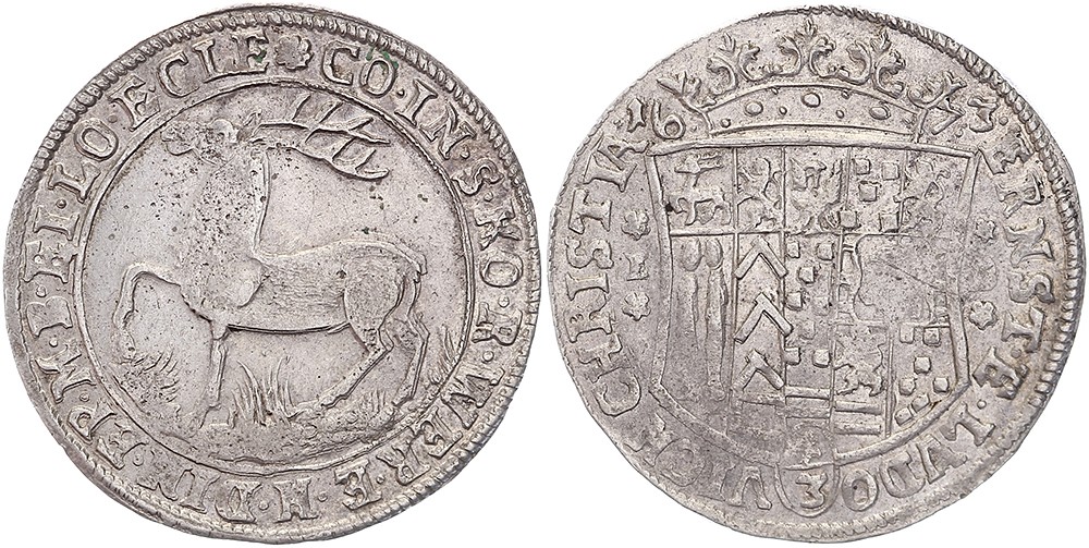 1/3 Taler 1673. Friedrich 1304ff; KM 31. Prägeschwäche Rs. Gutes sehr schön / fast vorzüglich.