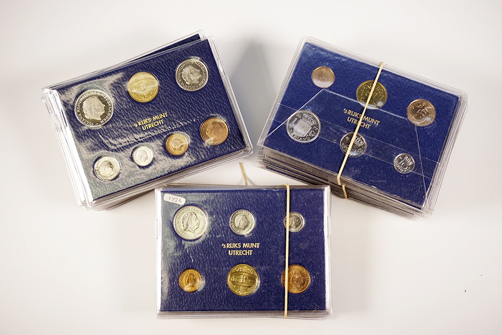 Doos met 38 FDC-sets in blauw karton: 7x 1976; 6x 1977; 10x 1978; 15x 1979.