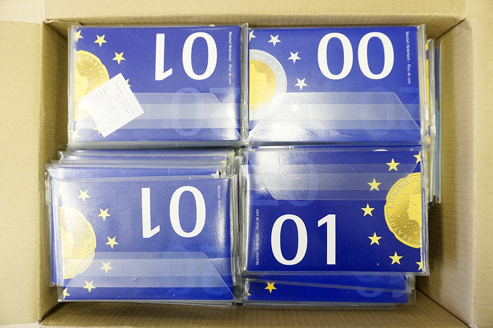 Theelichtjes-doos met 116 provincie FDC-sets 1987-1998 en 42 blauwe FDC-sets 1999-2001. Totaal: 158 stuks.