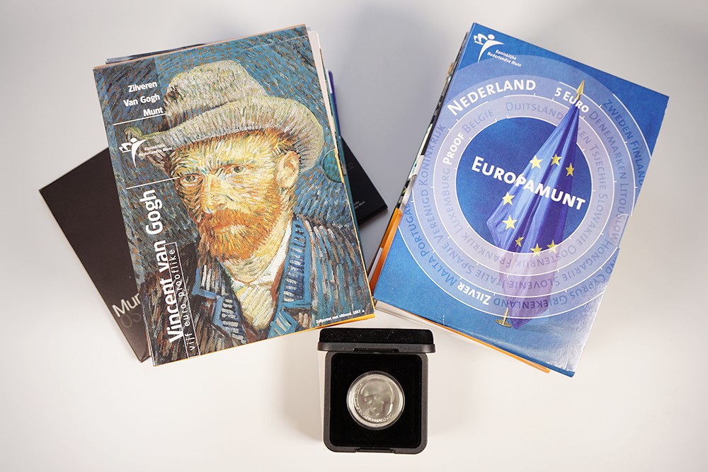 Nike-schoenendoos vol met € 5 en € 10 herdenkingsmunten vanaf 2002. Allen in originele verpakking en proof. Nominaal: € 170,00.