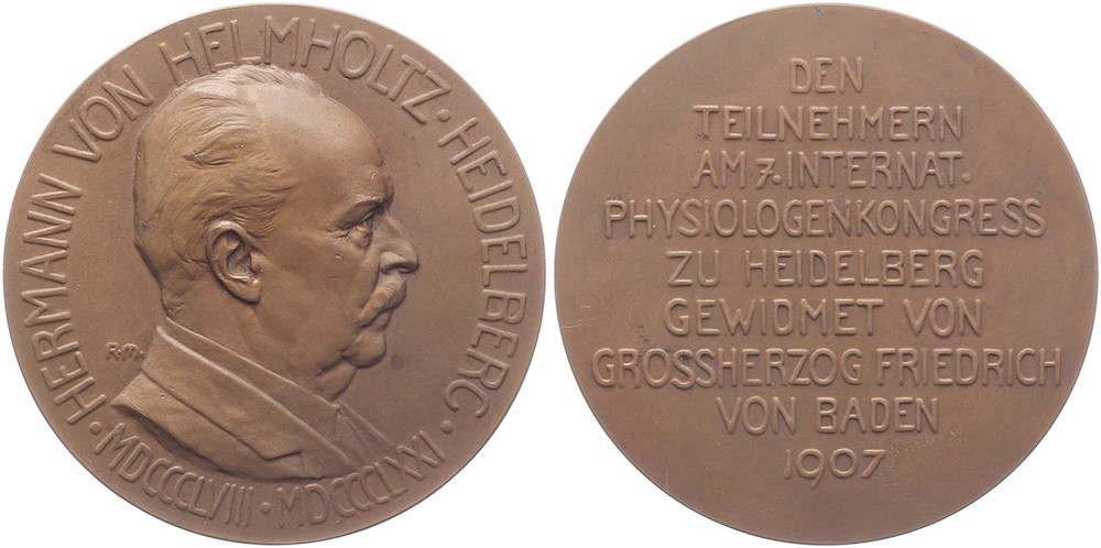 1907 Heidelberg, 7. Internat. Physiologen Kongress. Borstbeeld Hermann von Helmholtz naar rechts. / Negenregelig opschrift. Æ 60. Slg. Zeitz 581. R. Mayer. Prachtig.
