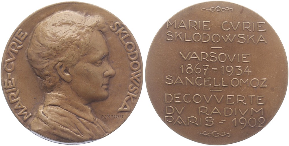 1934 Paris. Marie Curie-Sklodowska. Borstbeeld Marie naar rechts. / Tekst. Æ 50. O. Yencesse. Zeer fraai.