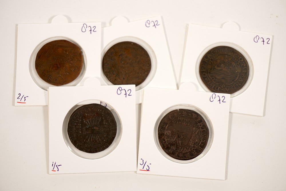 Lot (5) 1590 Maurits stadhouder [D. 3256]; 1593 Inname Geertruidenberg [D. 3324]; 1596 Triple Alliantie [D. 3402 & 3398]; 1597 Overwinningen Maurits [D. 3421]. Æ, gemiddeld zeer fraai.