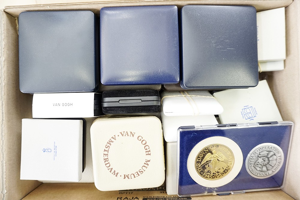 Groot lot penningen, veelal grootformaat in originele doosjes en/of cassettes (37).