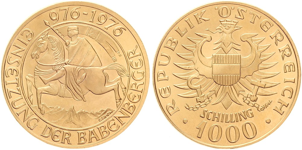1000 Schilling 1976 Babenberger. KM 2933; Fr. 909. Vorzüglich.