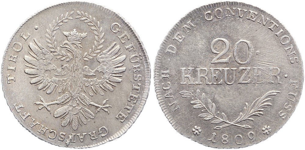 20 Kreuzer 1809 Andreas Hofer. Herinek 824; KM 149. Vorzüglich / Stempelglanz.
