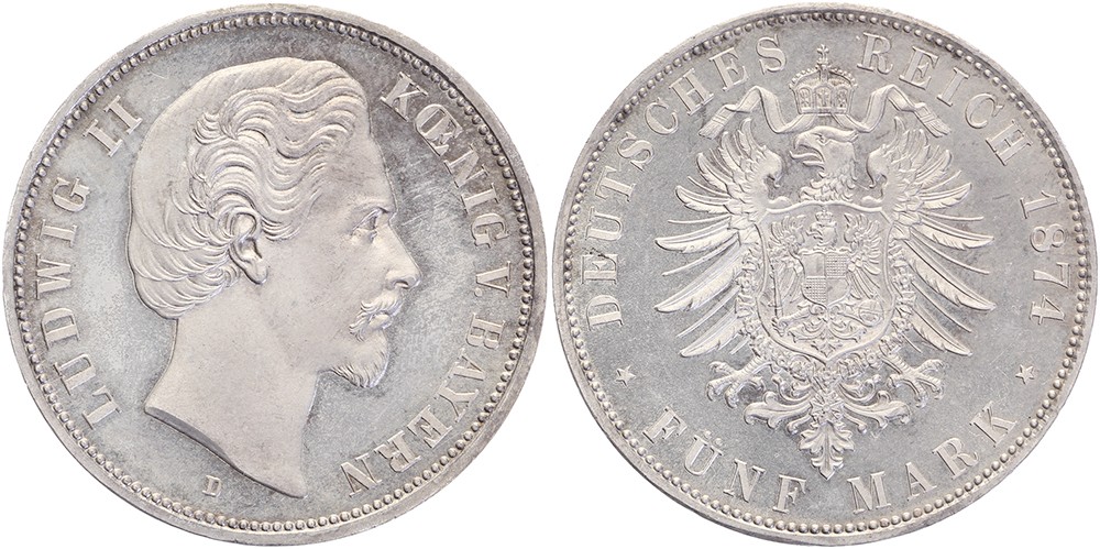 5 Mark 1874. Jaeger 194; KM 896. Stempelglanz / Prooflike.