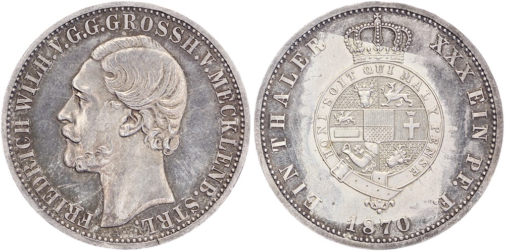 Thaler 1870. Davenport 732; AKS 71; KM 100. Unregelmäßige Patina Rs. Vorzüglich / Stempelglanz.