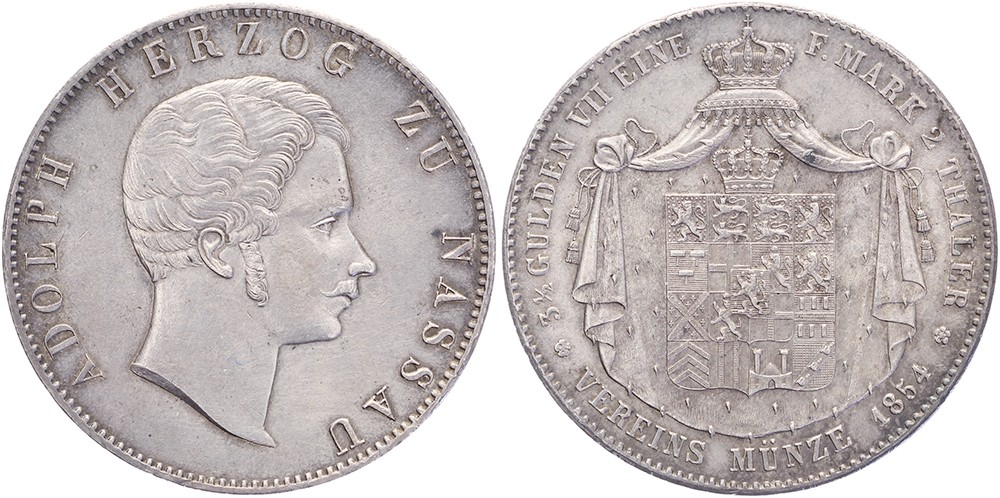 Doppelthaler 1854. Davenport 745; AKS 60; KM 69. Sehr schön / vorzüglich. Ex Auktion 260 Adolph Hess, Januar 1991, Los-Nr. 581