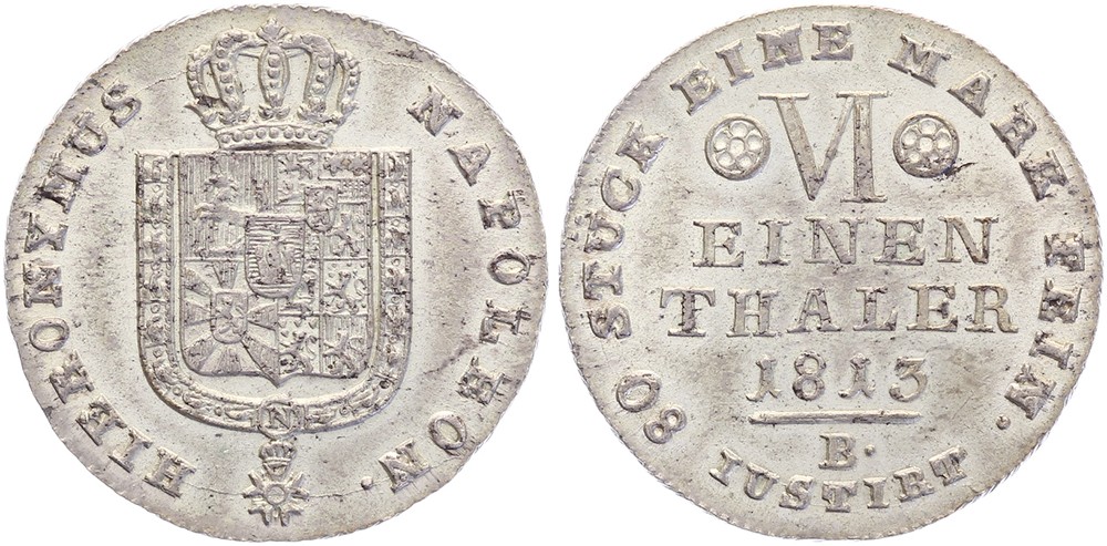 1/6 Thaler 1813B. AKS 15; KM — (88). Vorzüglich.