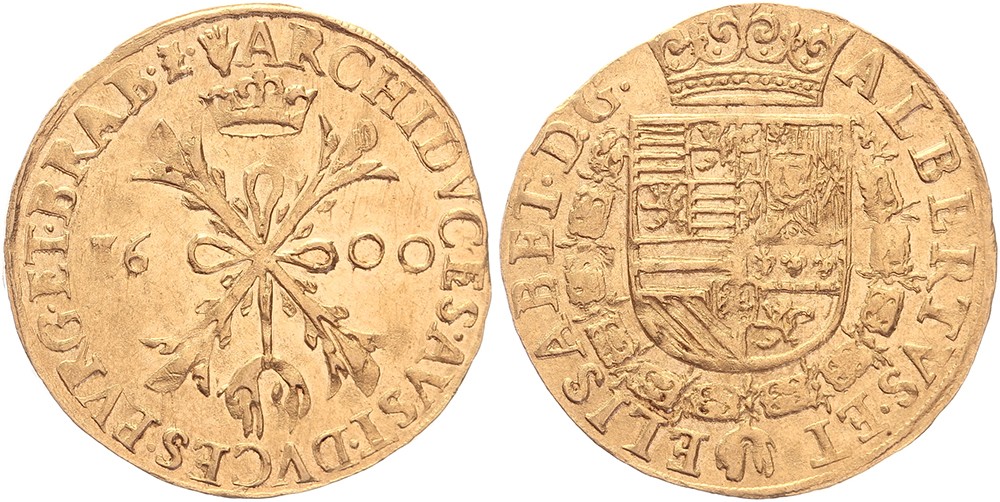 Dubbele albertijn 1600, Antwerpen. GH 284-1; Delm. 145 [5,13 gram]. Zwakke slag met nieuwglans. Prachtig.