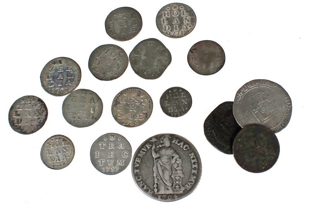 Doosje met 16 stuks divers provinciaal, o.a. dubbele wapenstuivers.