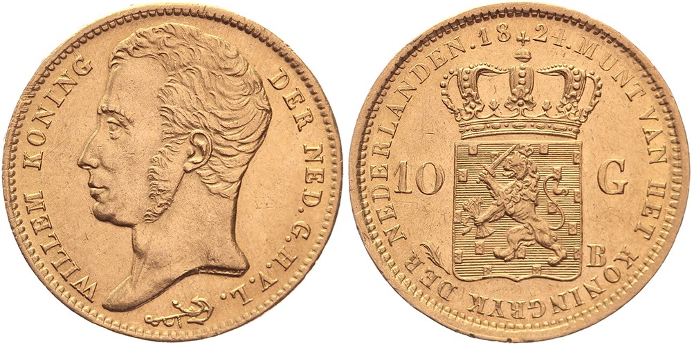 10 Gulden 1824 Brussel mmt. palmtak Sch. 190 Vrijwel prachtig