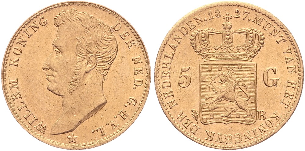 5 Gulden 1827 Brussel mmt. palmtak Sch. 198 Prachtig