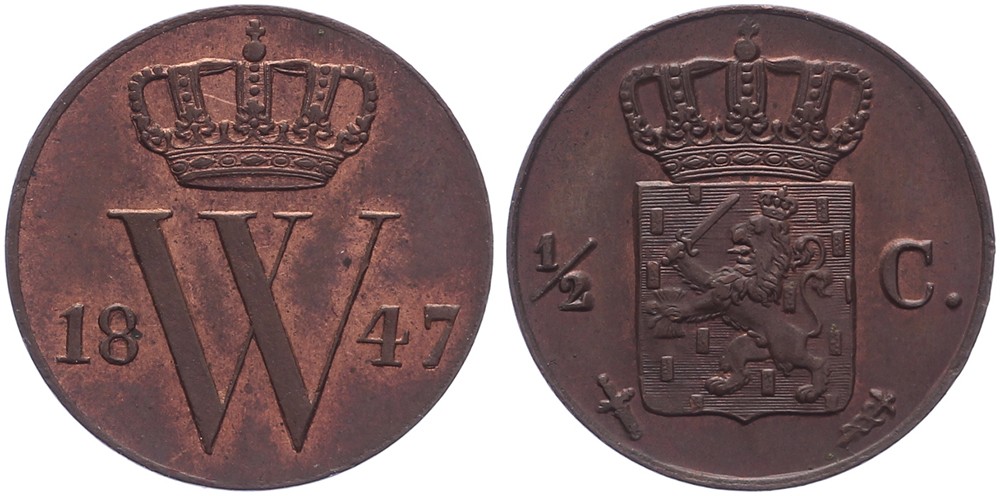 ½ Cent 1847 mmt. zwaard Sch. 541. Originele kleur FDC