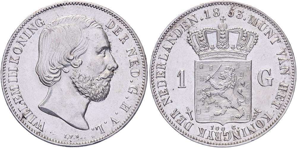 1 Gulden 1853 uit 1851 mmt. zwaard Sch. 606b Prachtig / FDC