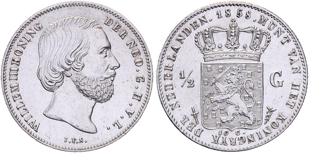 ½ Gulden 1858 mmt. zwaard Sch. 625 Ruim prachtig