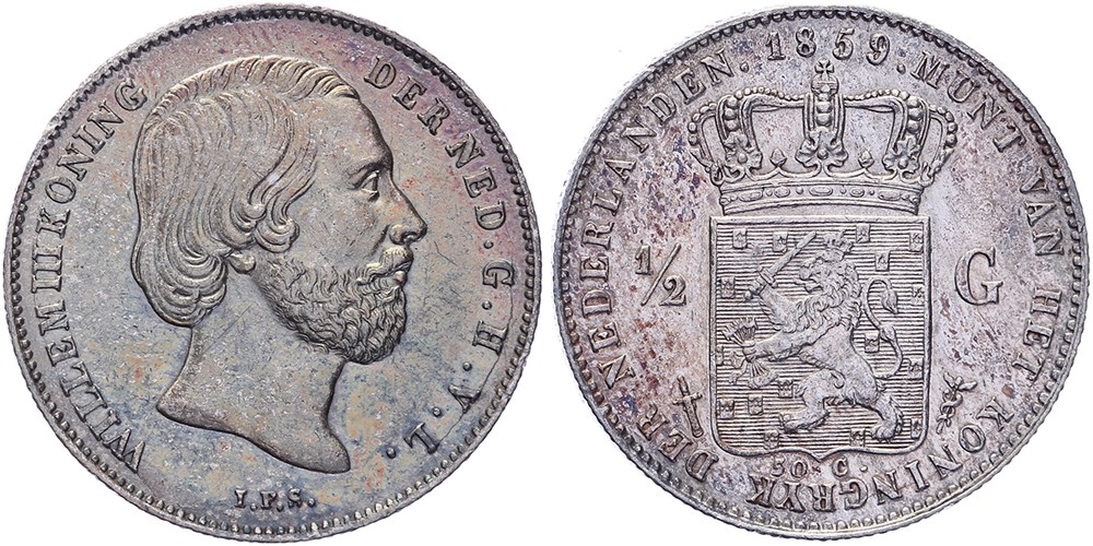 ½ Gulden 1859 mmt. zwaard Sch. 626 Prachtig