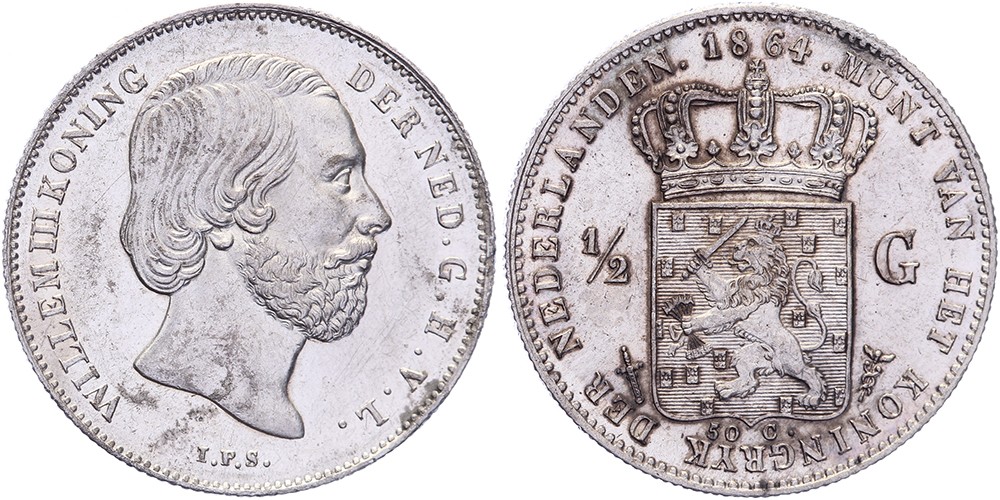 ½ Gulden 1864 mmt. zwaard Sch. 631 Ruim prachtig