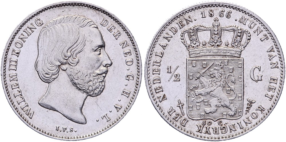 ½ Gulden 1866 mmt. zwaard Sch. 632 Prachtig