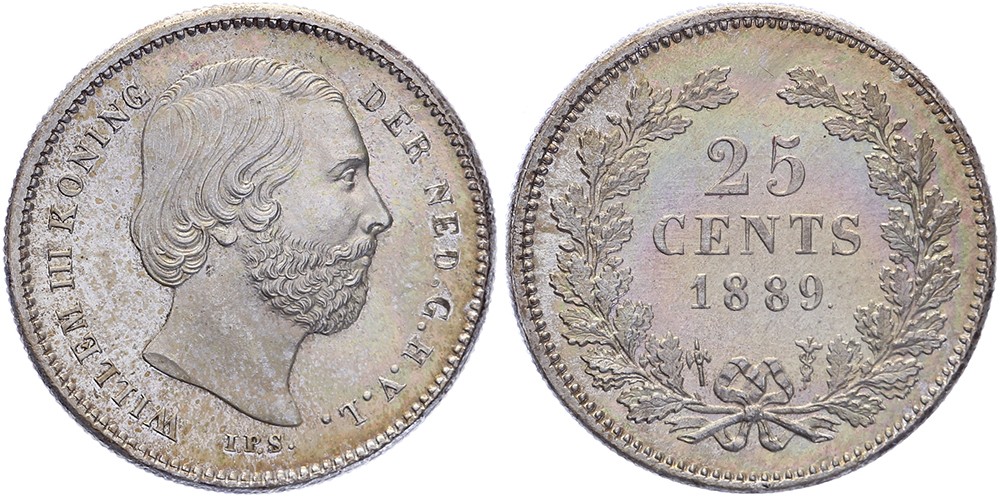 25 Cents 1889 mmt. hellebaard Sch. 638. Goudgele glans FDC