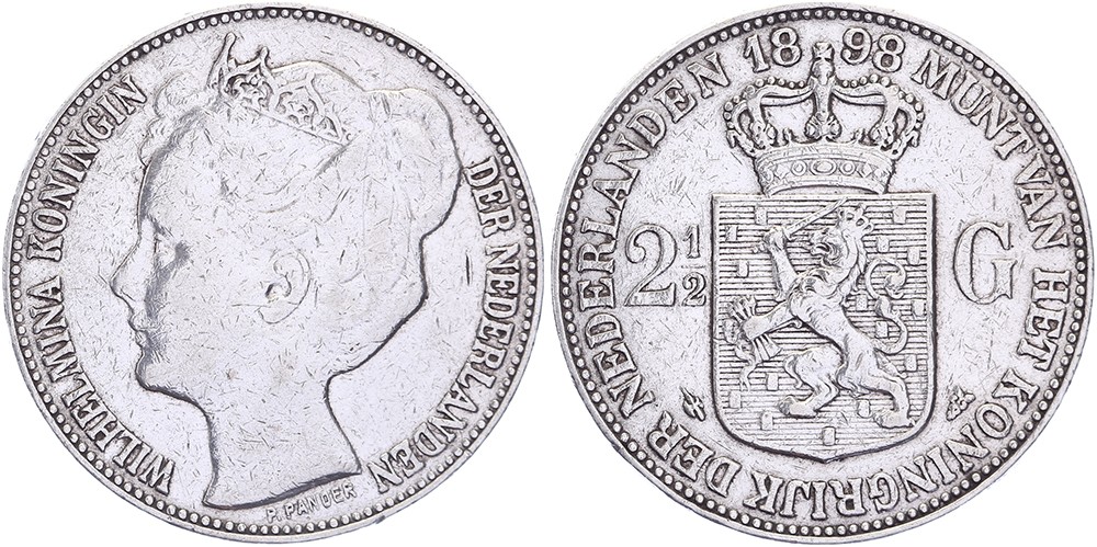 Rijksdaalder 1898 mmt. hellebaard Sch. 782. P. PANDER, kras vz. Vrijwel zeer fraai