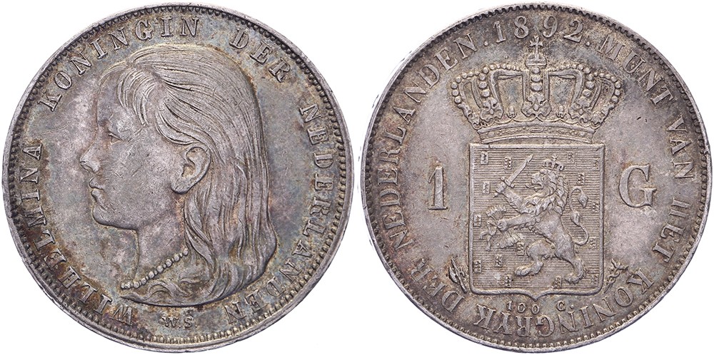 1 Gulden 1892 mmt. hellebaard Sch. 795 Prachtig
