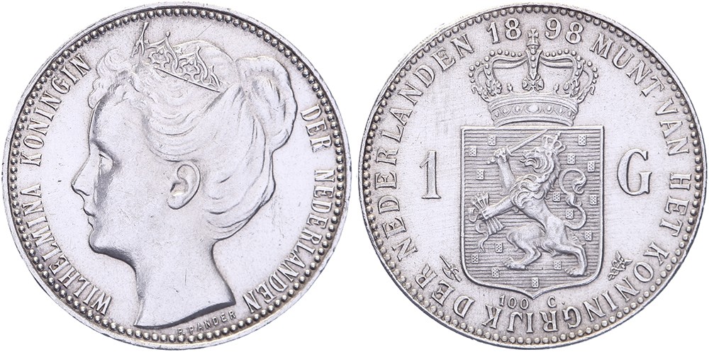 1 Gulden 1898 mmt. hellebaard Sch. 802. Mooie kleur Vrijwel FDC