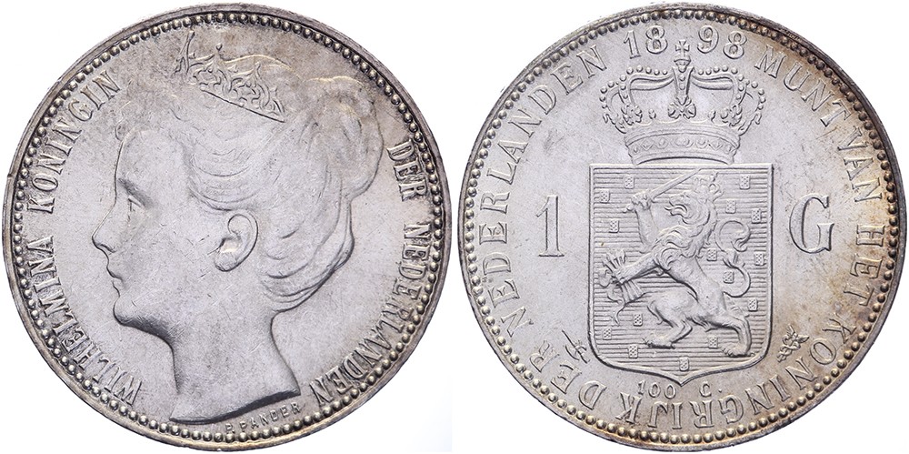 1 Gulden 1898 mmt. hellebaard Sch. 802. Mooie kleur Vrijwel FDC