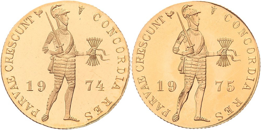 Lot (2) Dukaat 1974, 1975 mmt. haan Sch. 1080 en 1081 Prooflike