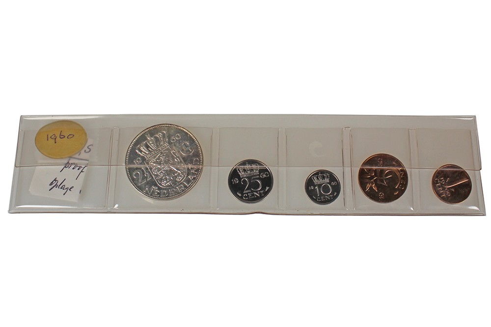 Proofserie 1960 in plastic strip; 1 – 5 – 10 – 25 cent en 2½ gulden.