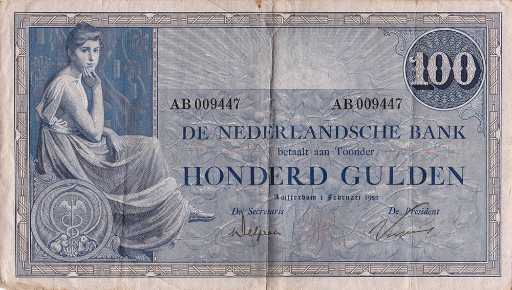 100 Gulden 1922 Grietje Seel. Mev. 116-1b; AV 80.1b.1; PL 96.b1 [# AB 009447]. Fraai.
