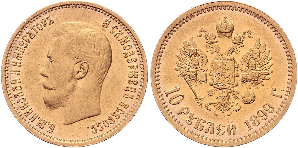 10 Roubles 1899. Fr. 179; KM Y64. VF.