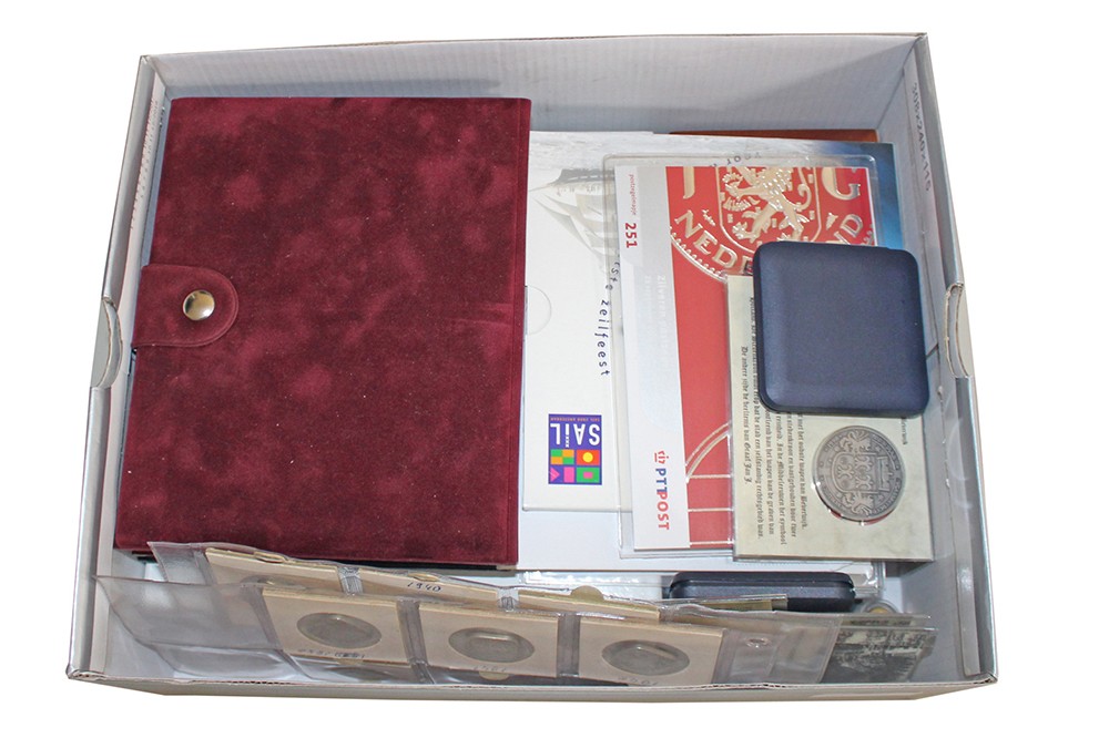 Verrassingsdoos met voornamelijk modern penningspul. Veel bling bling! Ook zilver.
