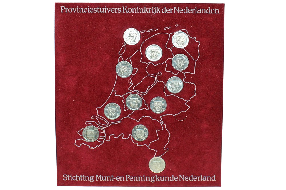 Doos met 85 sets met afbeeldingen van provinciestuivers van het Koninkrijk Der Nederlanden, 12 stuks per set!
