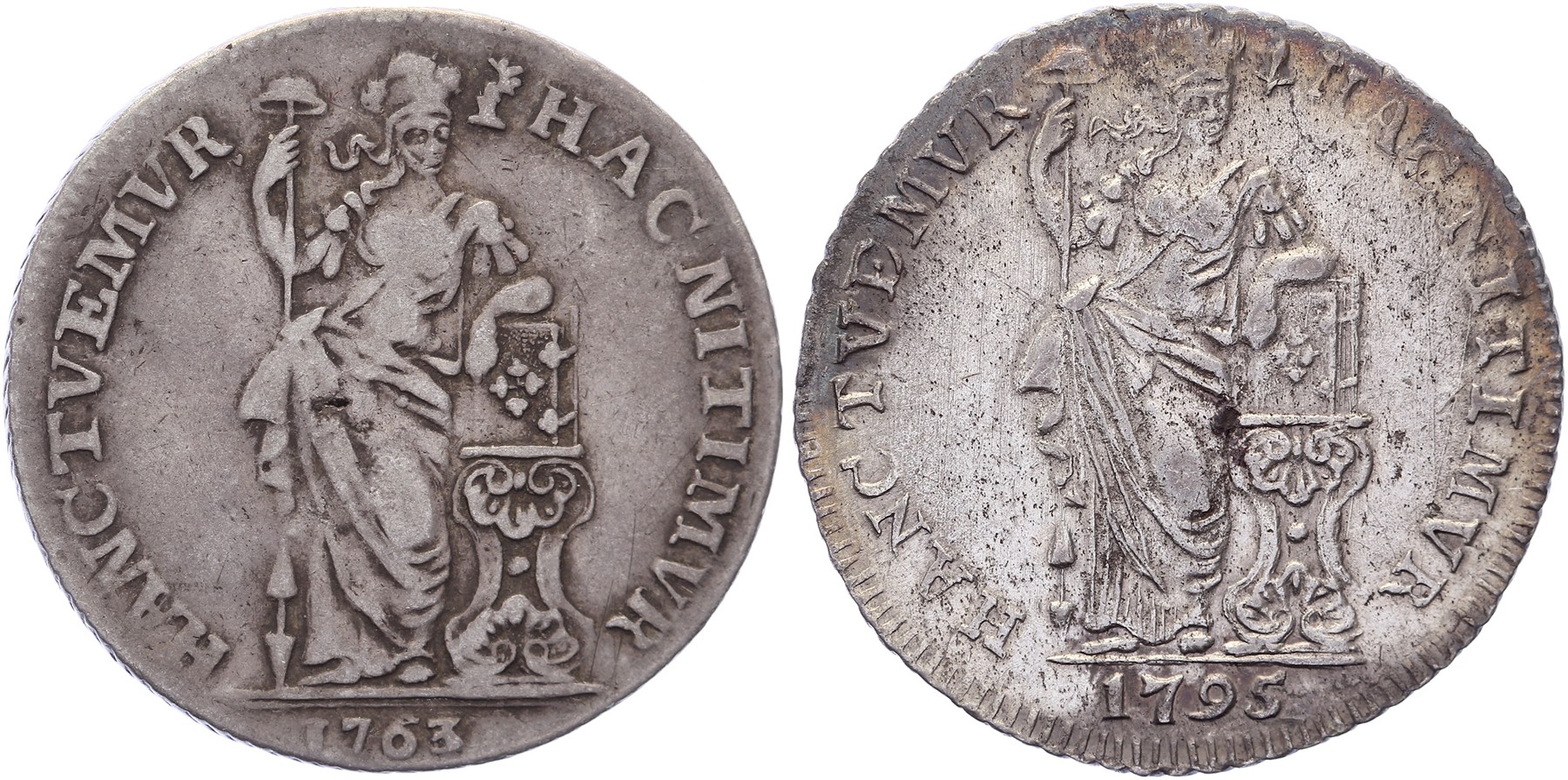Lot (2) Gulden 1763 en 1795. Delm. 1178; CNM 2.17.155. Fraai en zeer fraai.