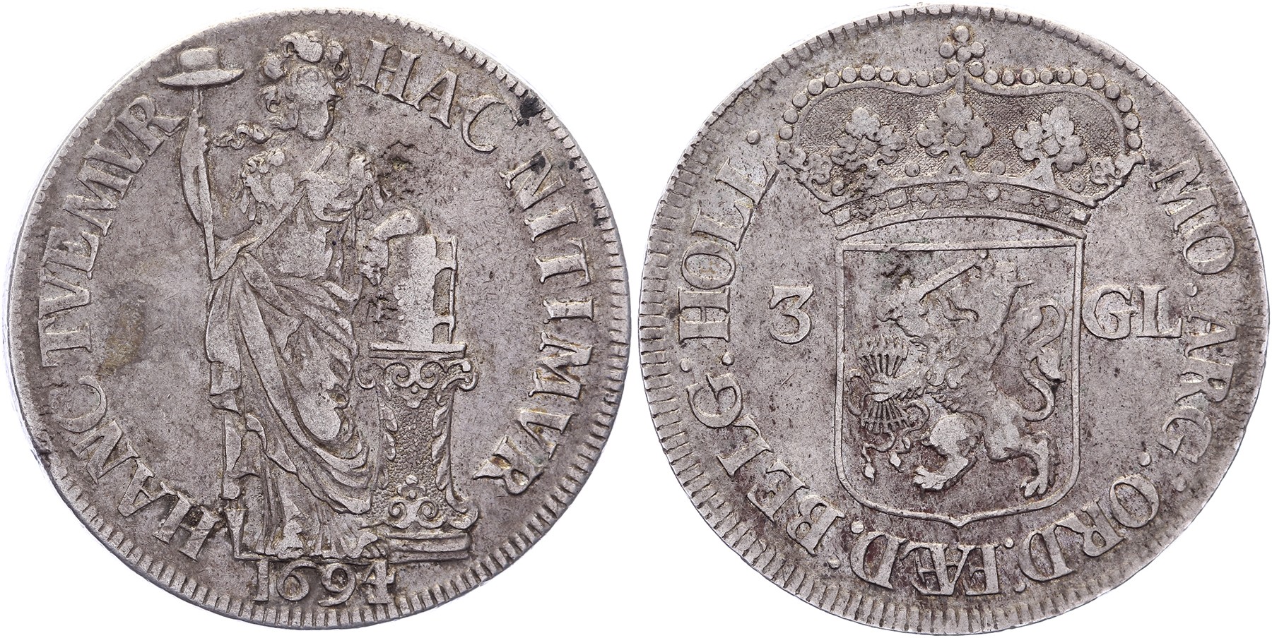 3 Gulden 1694. Delm. 1164; CNM 2.28.96; HPM 61. Fraai / Zeer fraai.