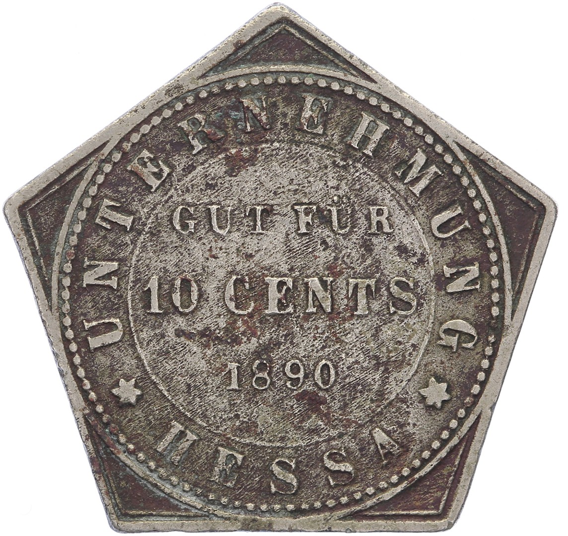 Hessa. 10 Cents 1890; LaBe 99; LaWe 114; Scholten 1071. Pentagonal. RRR. Fraai / Zeer fraai.