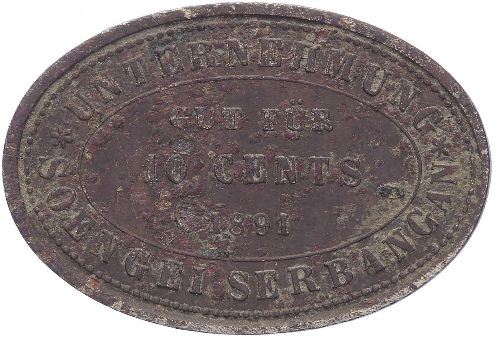 Soengei Serbangan. 10 Cents 1891. LaBe 285; LaWe 421b. Nice old patina. RR. Fraai / Zeer fraai.