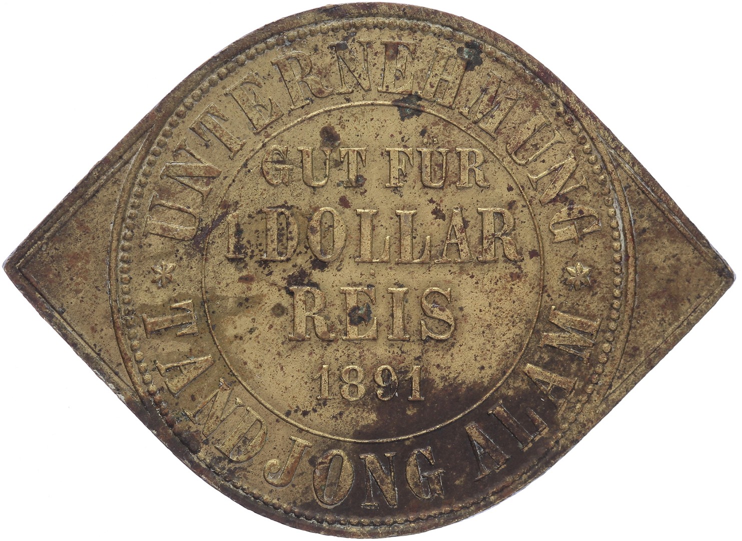 Tandjong Alam. 1 Dollar 1891 Reis. LaBe 310; LaWe 467. RR. Zeer fraai.