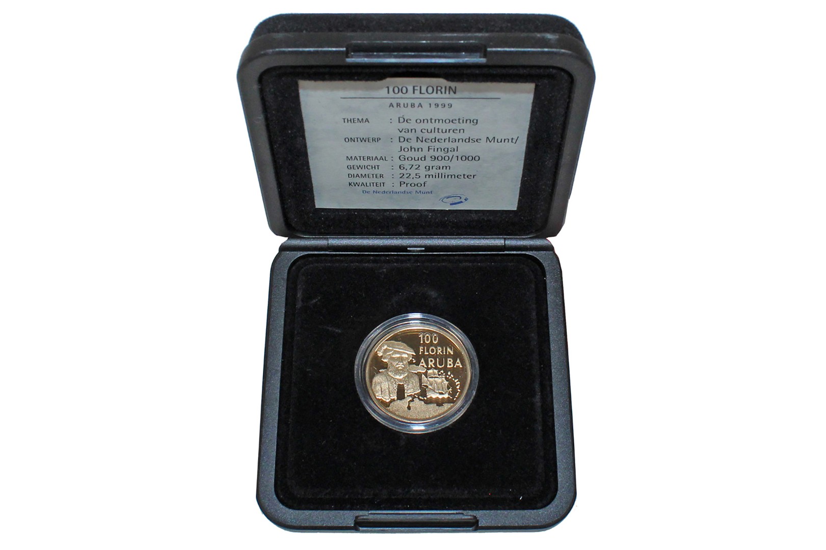 Gouden 100 florin 1999 Vespucci. Oplage 1.100. Proof in cassette.