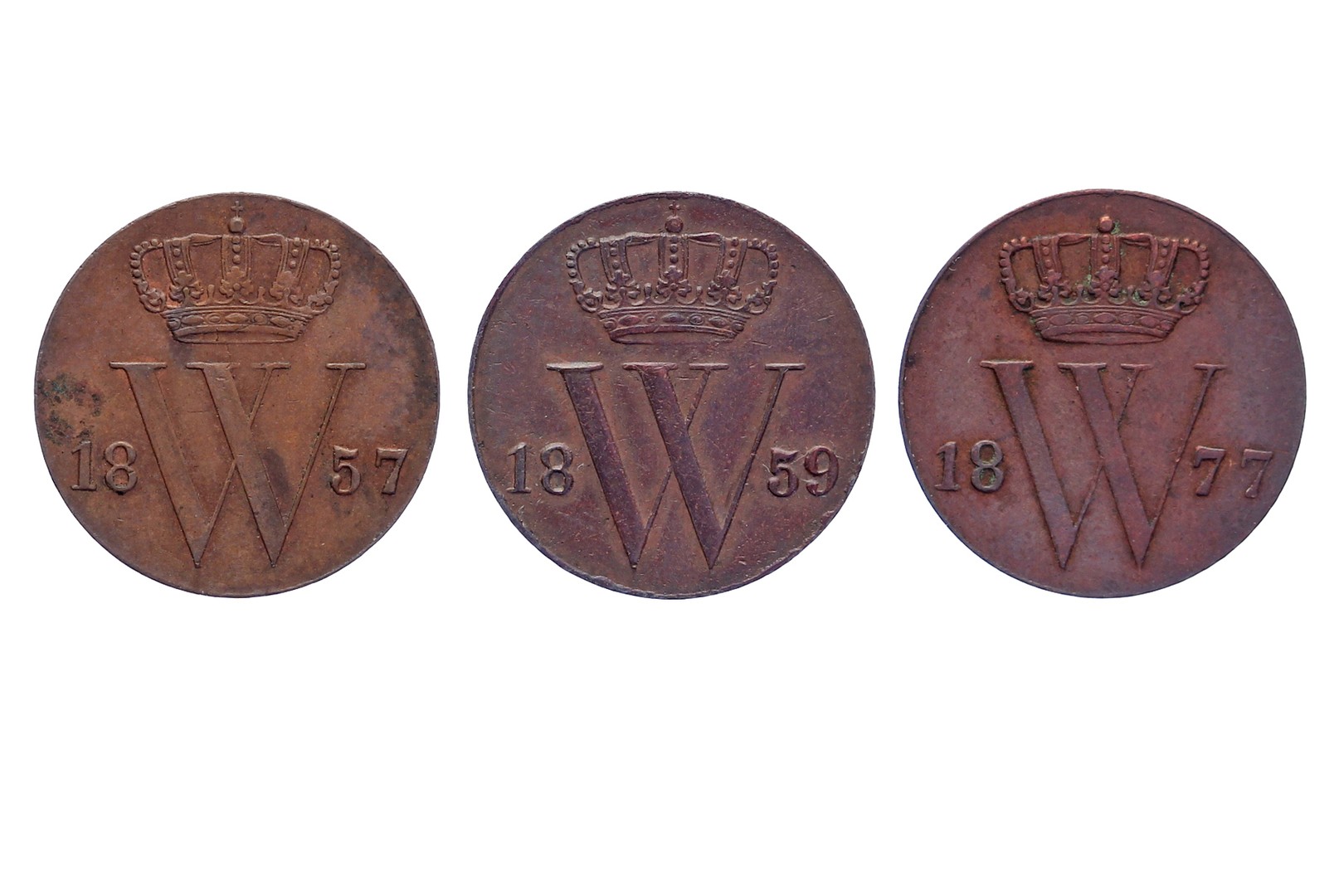 Lot (3) ½ Cent 1857, 1859 en 1877 Sch. 709, 710 en 723 Vrijwel zeer fraai