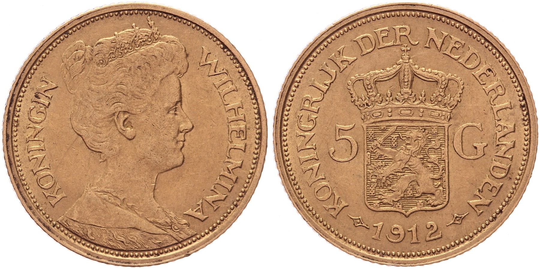 5 Gulden 1912 zonder mmt. Sch. 754 Zeer fraai