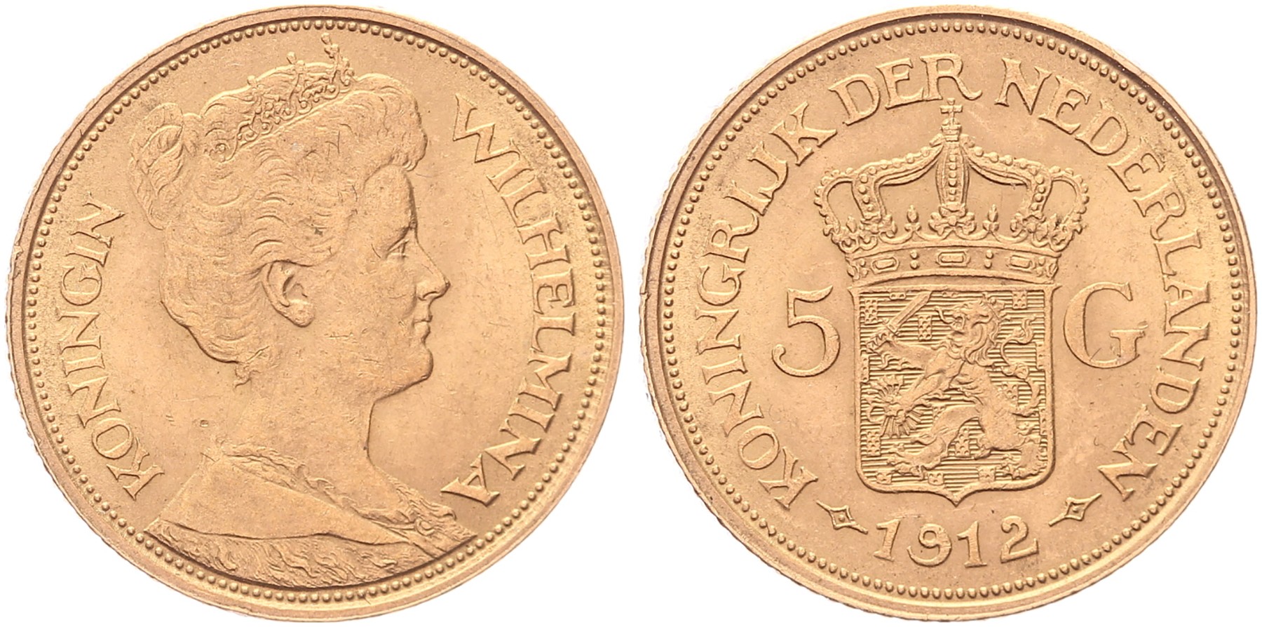 5 Gulden 1912 zonder mmt. Sch. 754 Zeer fraai / Prachtig